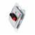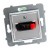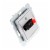 Srebrny wyłącznik Ospel Aria z czerwonym podświetleniem na ścianie w nowoczesnej kuchni z białymi meblami i czerwonymi krzesłami