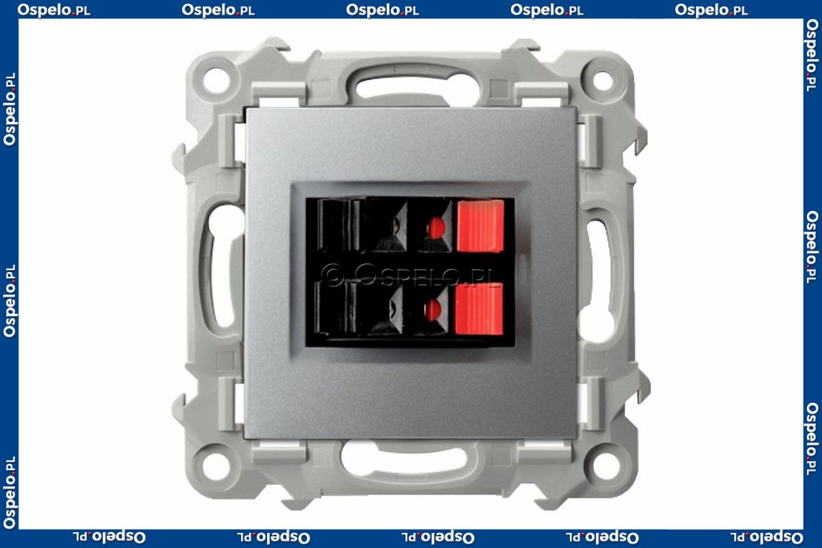 GG-2Z/m/18 Gniazdo głośnikowe podwójne (przewody max 0,75mm2) Srebro Ospel Szafir - Widok z przodu