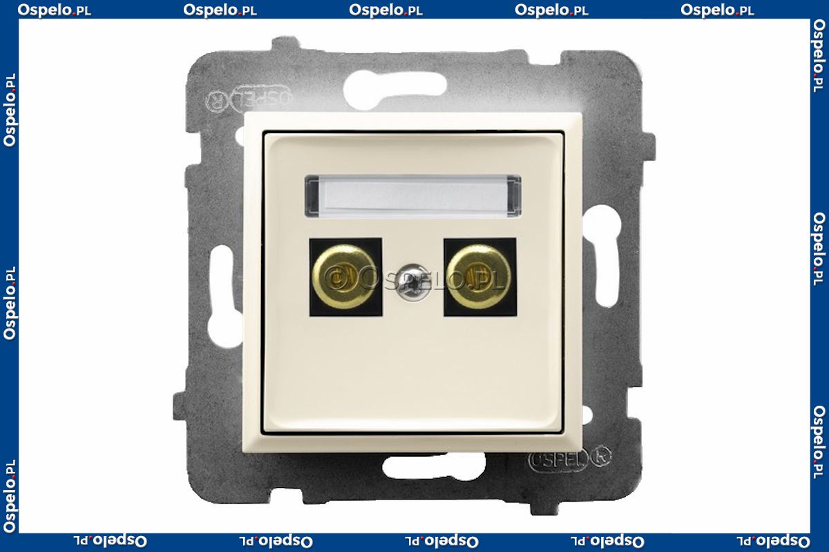 GGN-1U/m/27 Gniazdo głośnikowe typu Banan Ecru Ospel Aria - Widok z przodu