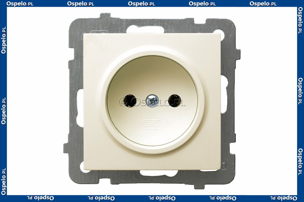 GP-1G/m/27 Gniazdo pojedyncze bez uziemienia 16A (Zaciski śrubowe) Ecru Ospel As - Widok z przodu