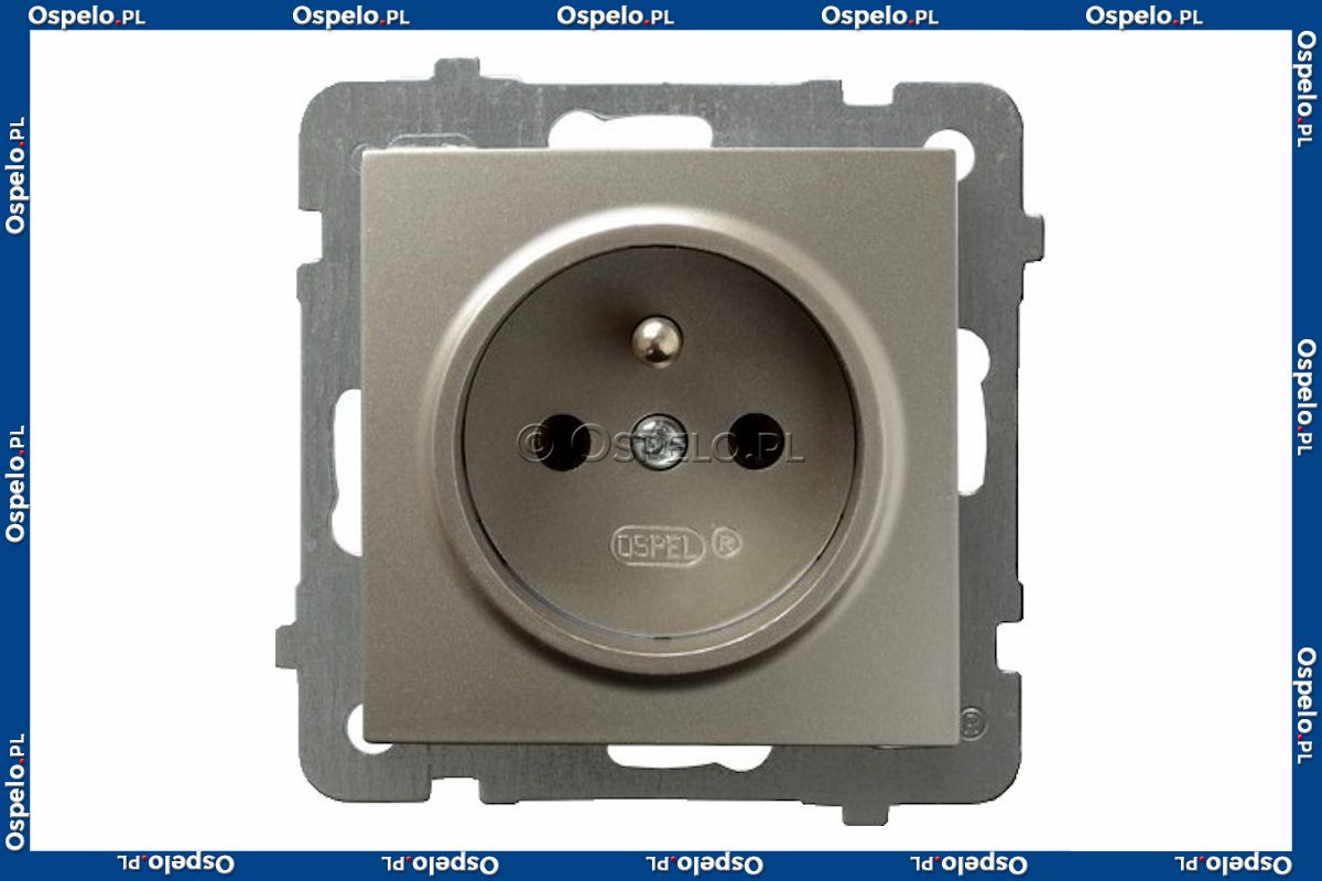 GP-1GZ/m/45 Gniazdo pojedyncze z uziemieniem 16A (Zaciski śrubowe) Satyna Light Ospel As - Widok z przodu