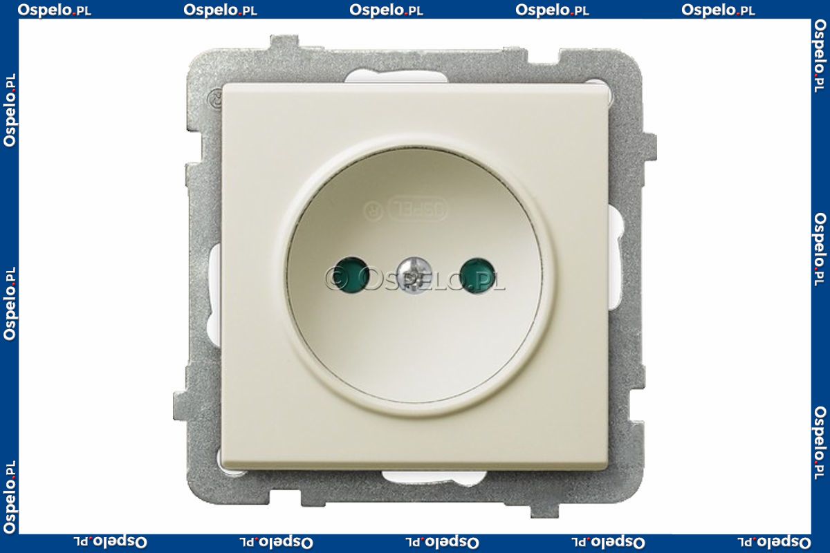 GP-1RP/m/27 Gniazdo pojedyncze z przesłonami torów prądowych 16A (Zaciski śrubowe) Ecru Ospel Sonata - Widok z przodu