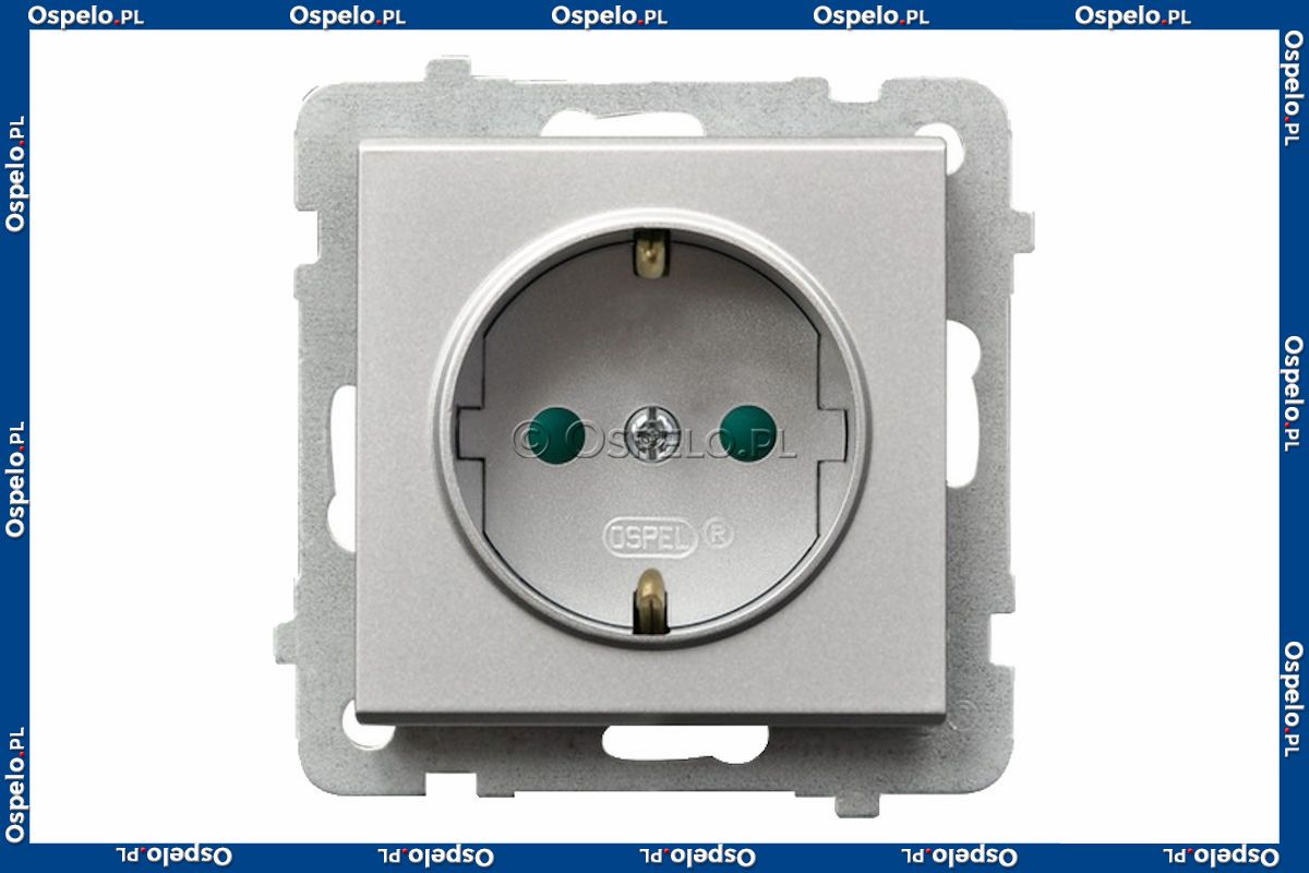 GP-1RSP/m/38 Gniazdo pojedyncze z uziemieniem Schuko i przesłonami torów prądowych 16A (Zaciski śrubowe) Srebro Mat Ospel Sonata - Widok z przodu