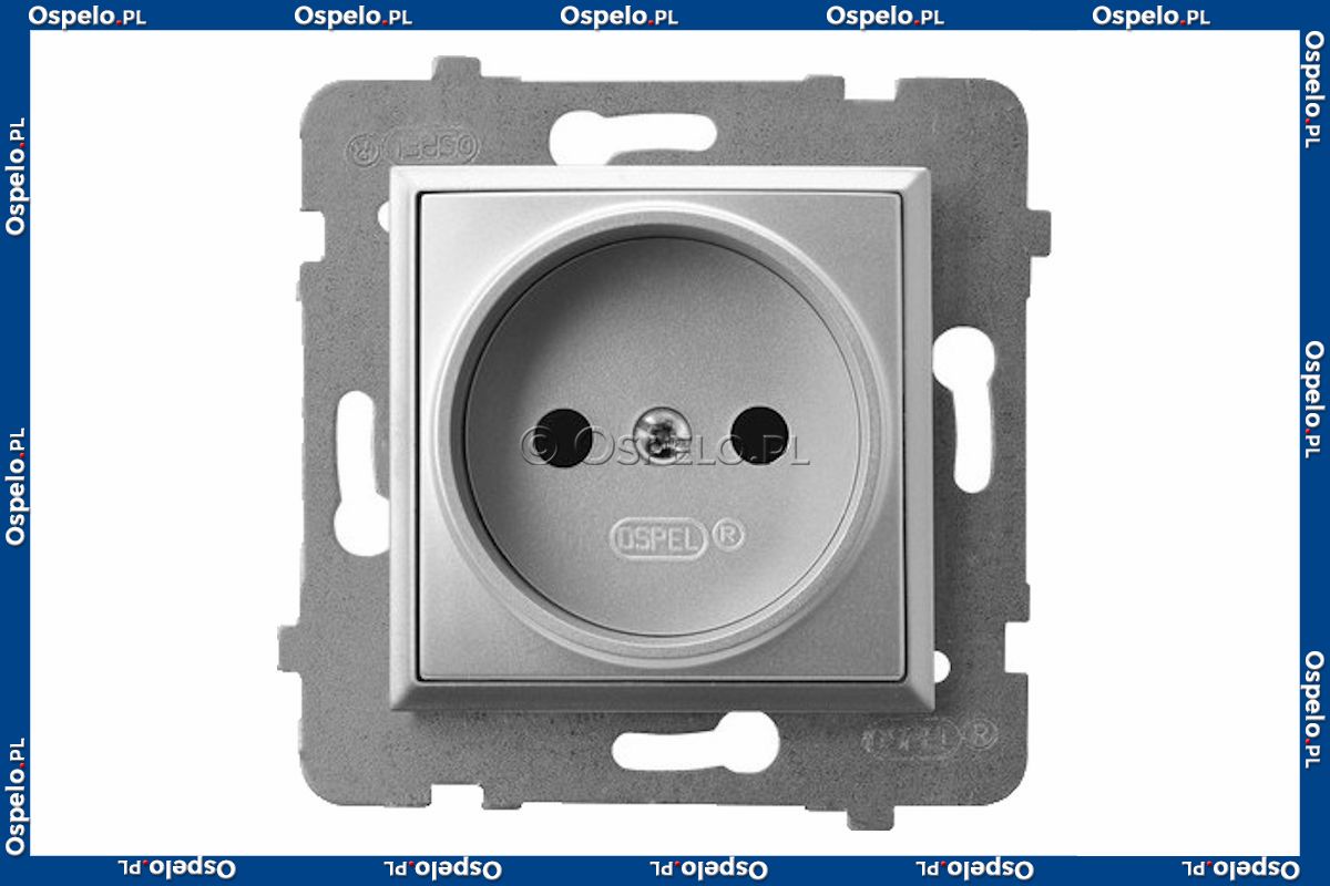 GP-1U/m/18 Gniazdo pojedyncze bez uziemienia 16A (Zaciski śrubowe) Srebro Ospel Aria - Widok z przodu