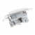 Szkic zdjęcia gniazdka elektrycznego obok którego znajdują się szczegółowe dane techniczne produktu-