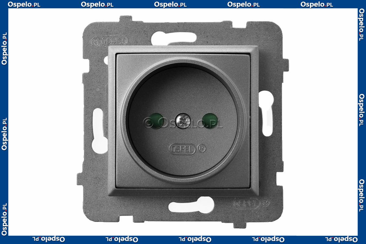 Gniazdo pojedyncze bez uziemienia z przesłonami torów prądowych 16A (Zaciski śrubowe) Szary Mat. Ospel Aria