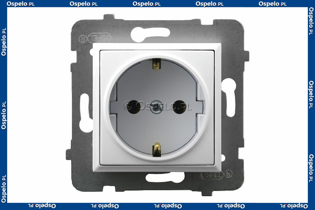 GP-1US/m/00 Gniazdo pojedyncze z uziemieniem Schuko 16A (Zaciski śrubowe) Biały Ospel Aria - Widok z przodu