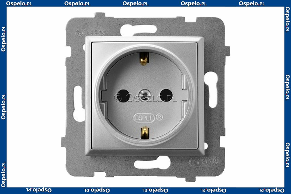 GP-1US/m/18 Gniazdo pojedyncze z uziemieniem Schuko 16A (Zaciski śrubowe) Srebro Ospel Aria - Widok z przodu