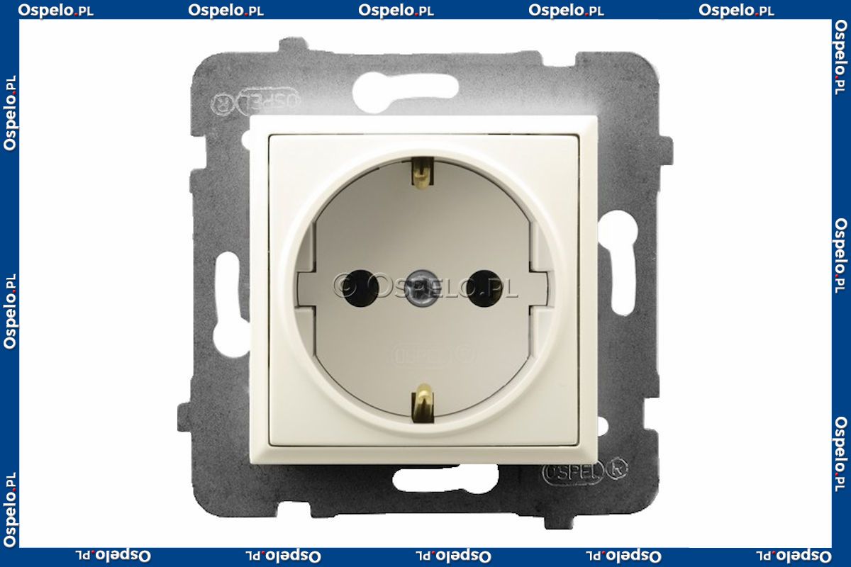 GP-1US/m/27 Gniazdo pojedyncze z uziemieniem Schuko 16A (Zaciski śrubowe) Ecru Ospel Aria - Widok z przodu