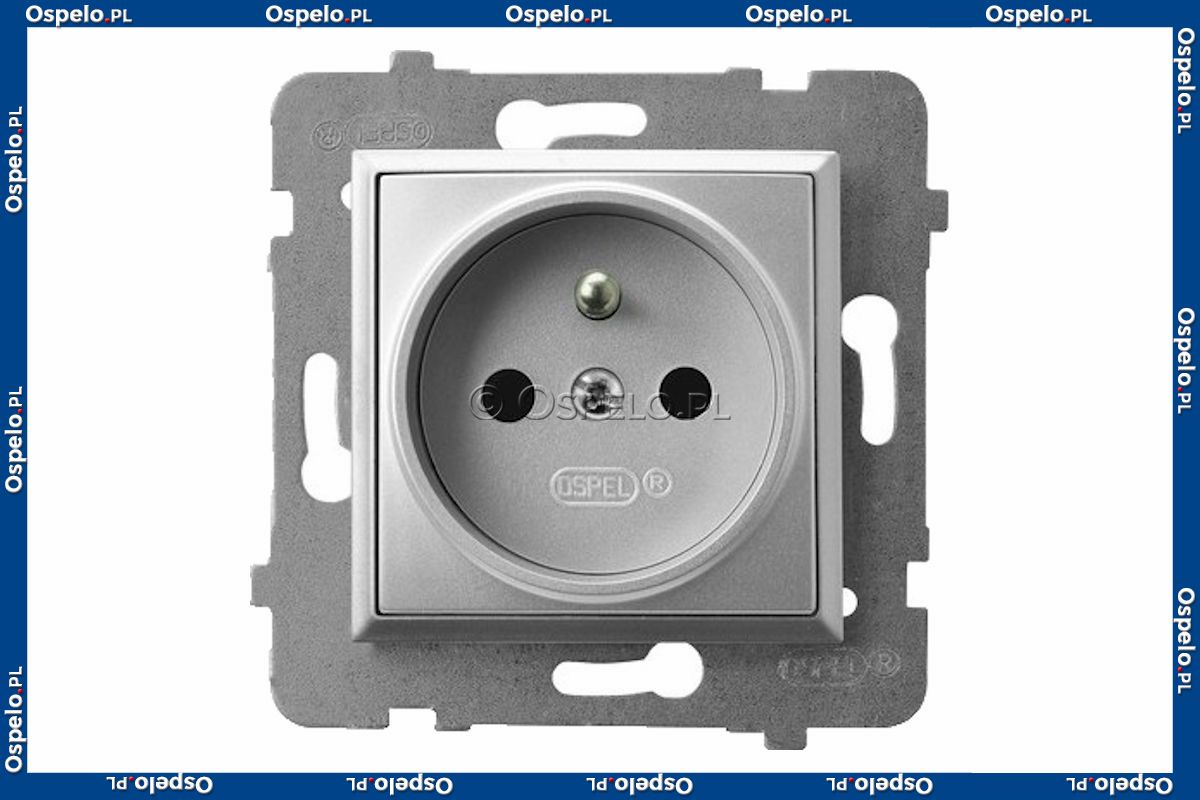 GP-1UZ/m/18 Gniazdo pojedyncze z uziemieniem 16A (Zaciski śrubowe) Srebro Ospel Aria - Widok z przodu