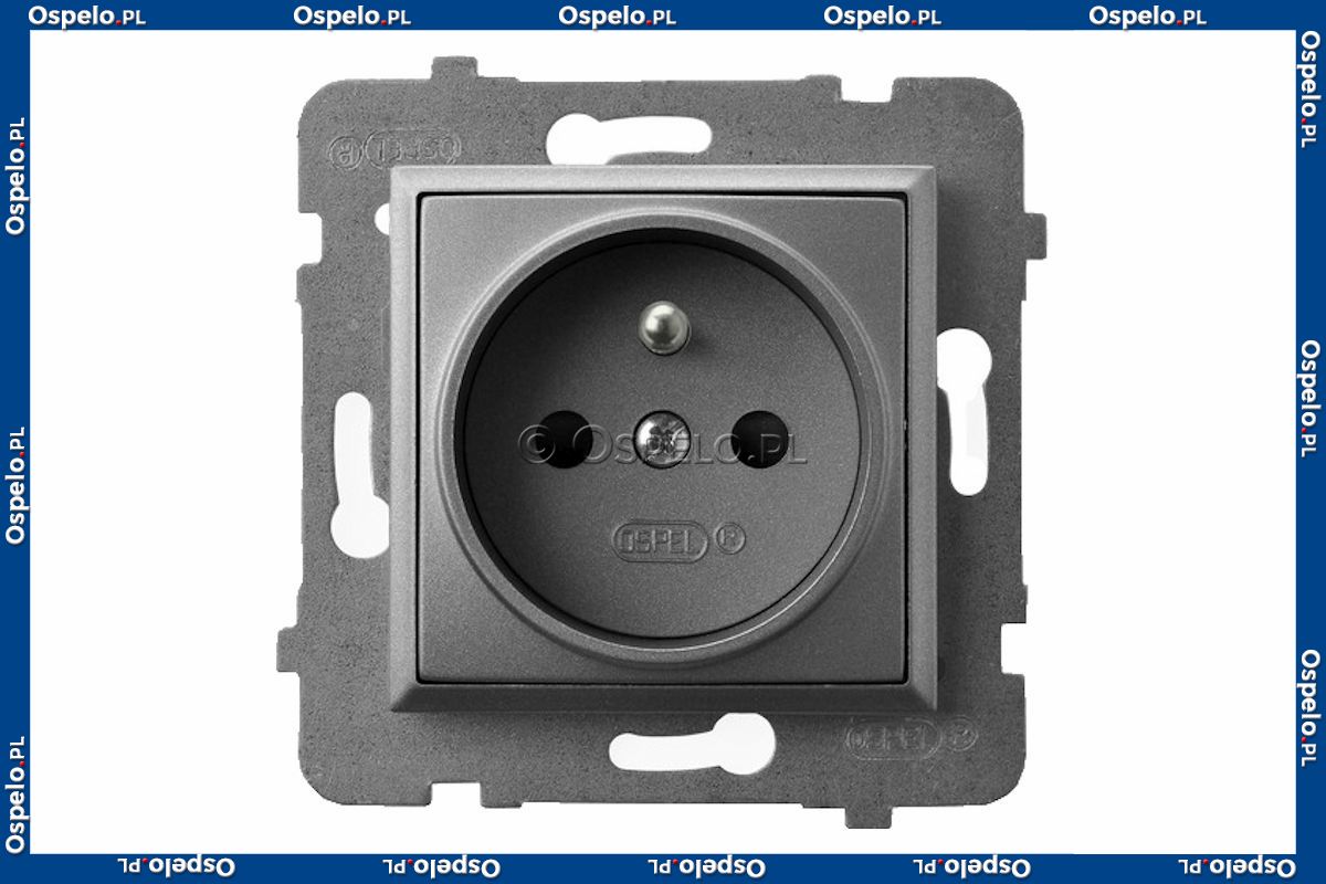 GP-1UZ/m/70 Gniazdo pojedyncze z uziemieniem 16A (Zaciski śrubowe) Szary Mat. Ospel Aria - Widok z przodu