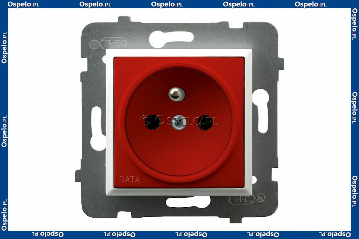 GP-1UZD/m/00/22 Gniazdo pojedyncze z uziemieniem DATA 16A (Zaciski śrubowe) Czerwony Ospel Aria - Widok z przodu