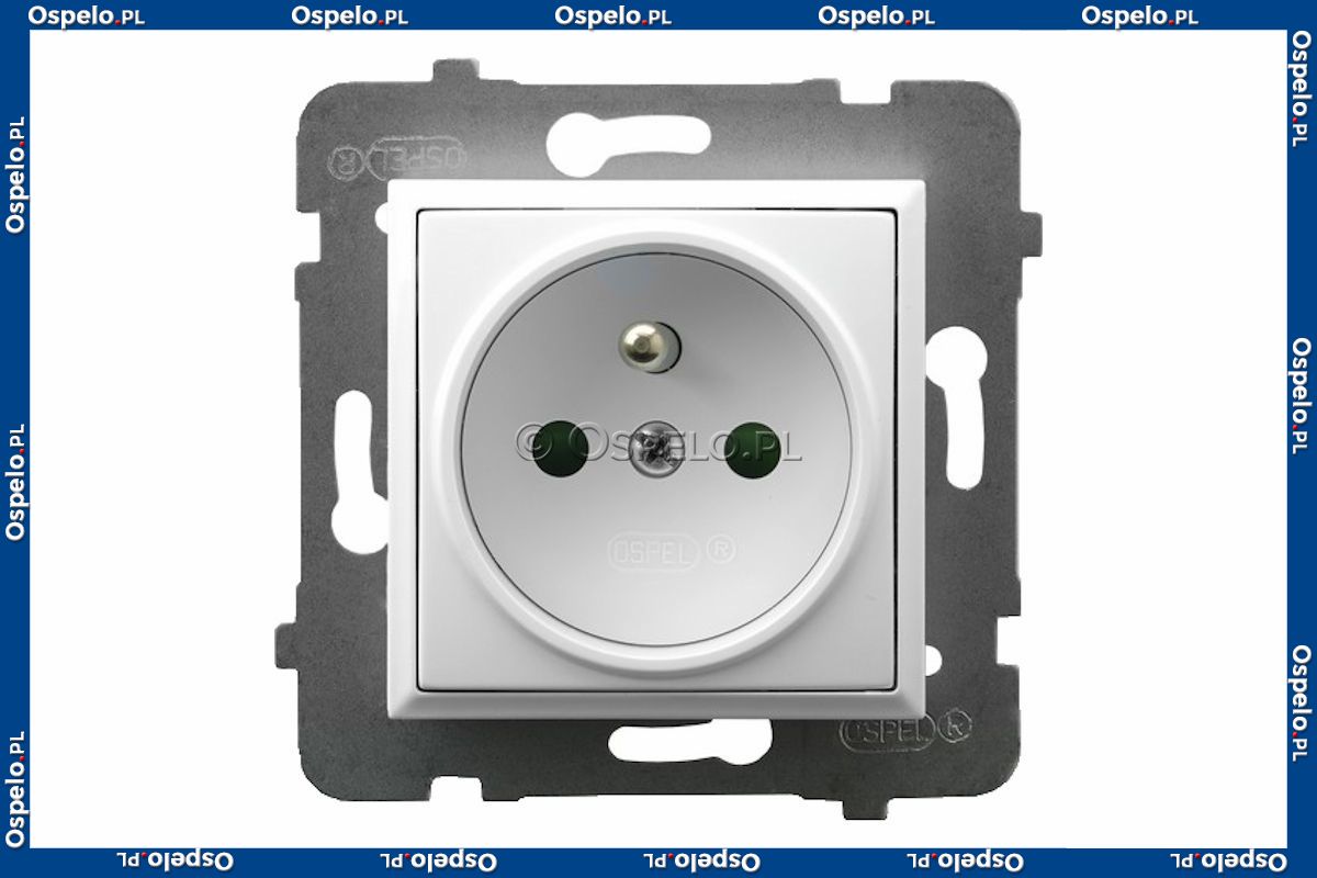 GP-1UZP/m/00 Gniazdo pojedyncze z uziemieniem z przesłonami torów prądowych 16A (Zaciski śrubowe) Biały Ospel Aria - Widok z przodu
