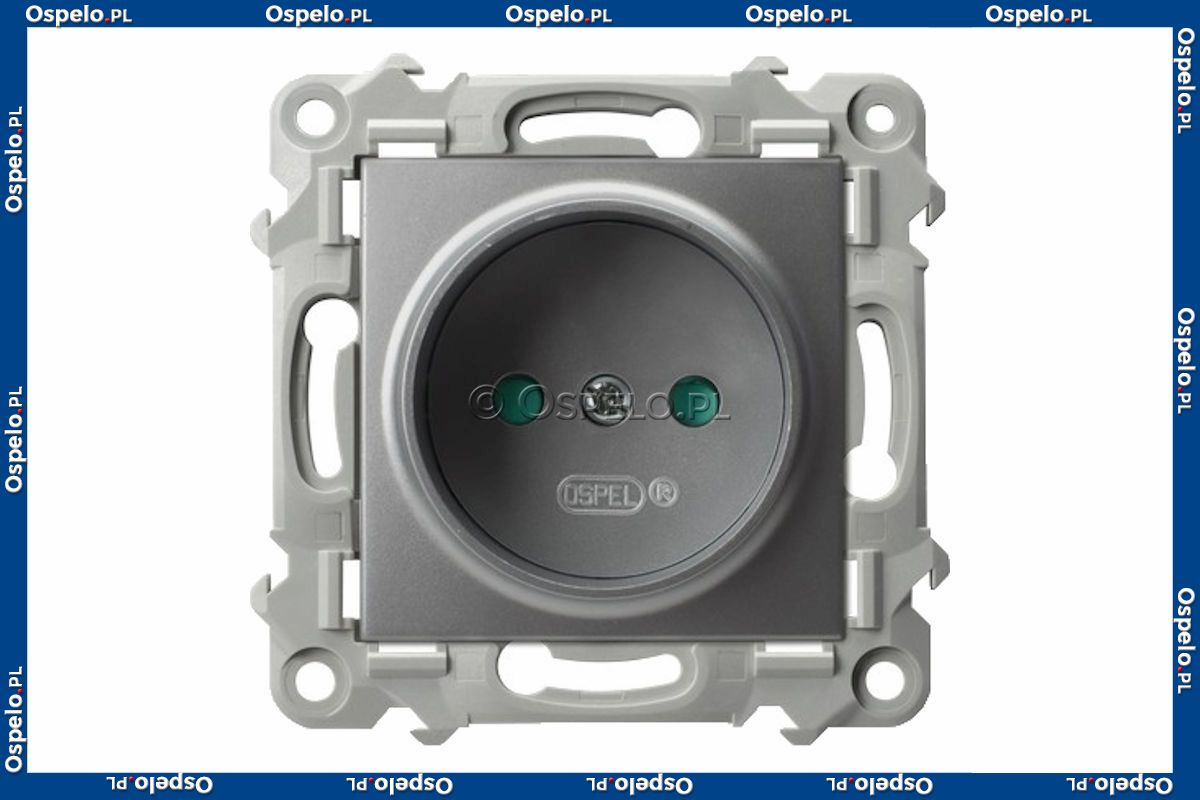GP-1ZP/m/70 Gniazdo pojedyncze bez uziemienia z przesłonami torów prądowych 16A (Zaciski śrubowe) Szary Mat. Ospel Szafir - Widok z przodu