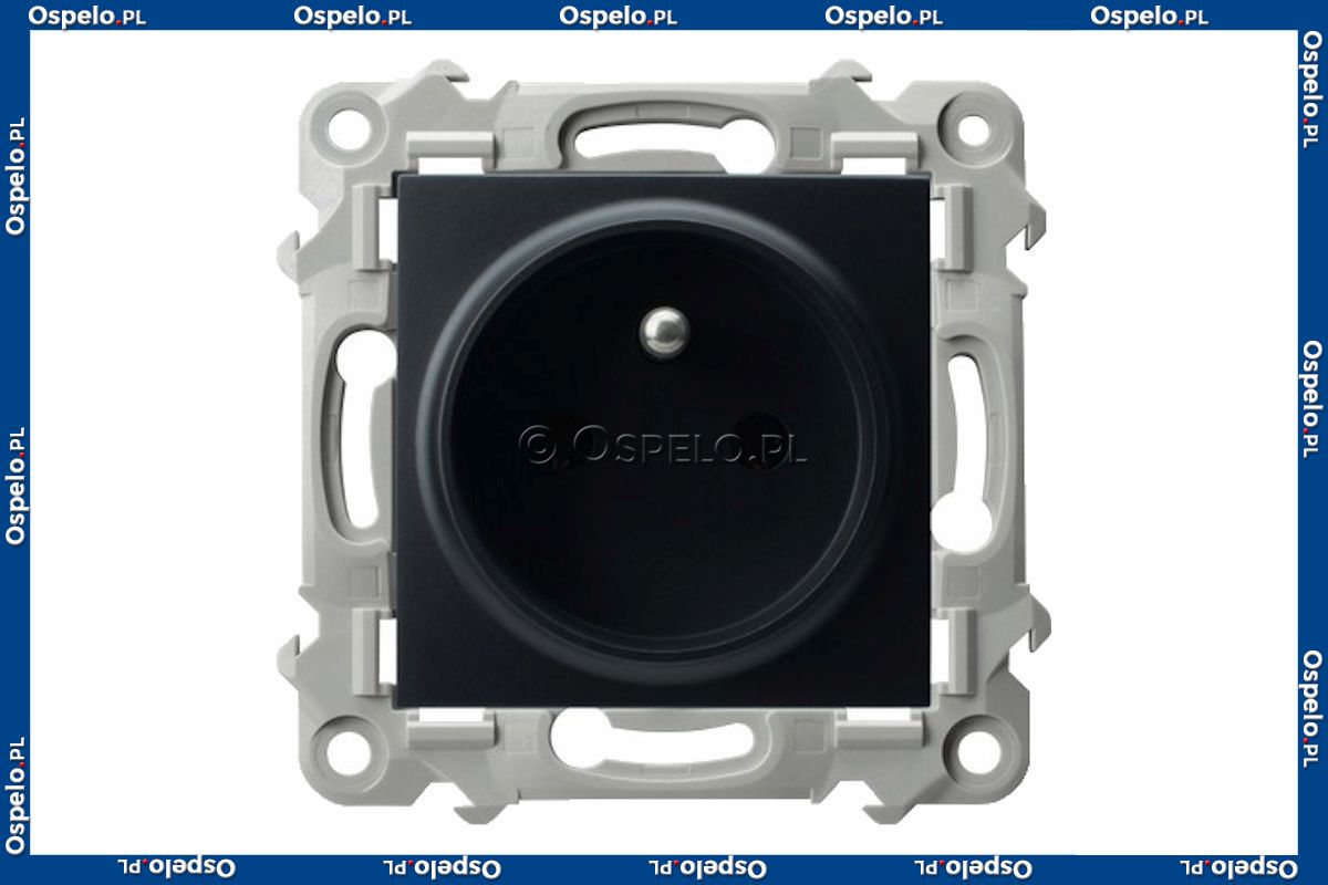 GP-1ZZ/m/33 Gniazdo pojedyncze z uziemieniem 16A (Zaciski śrubowe) Czarny Metalik Ospel Szafir - Widok z przodu