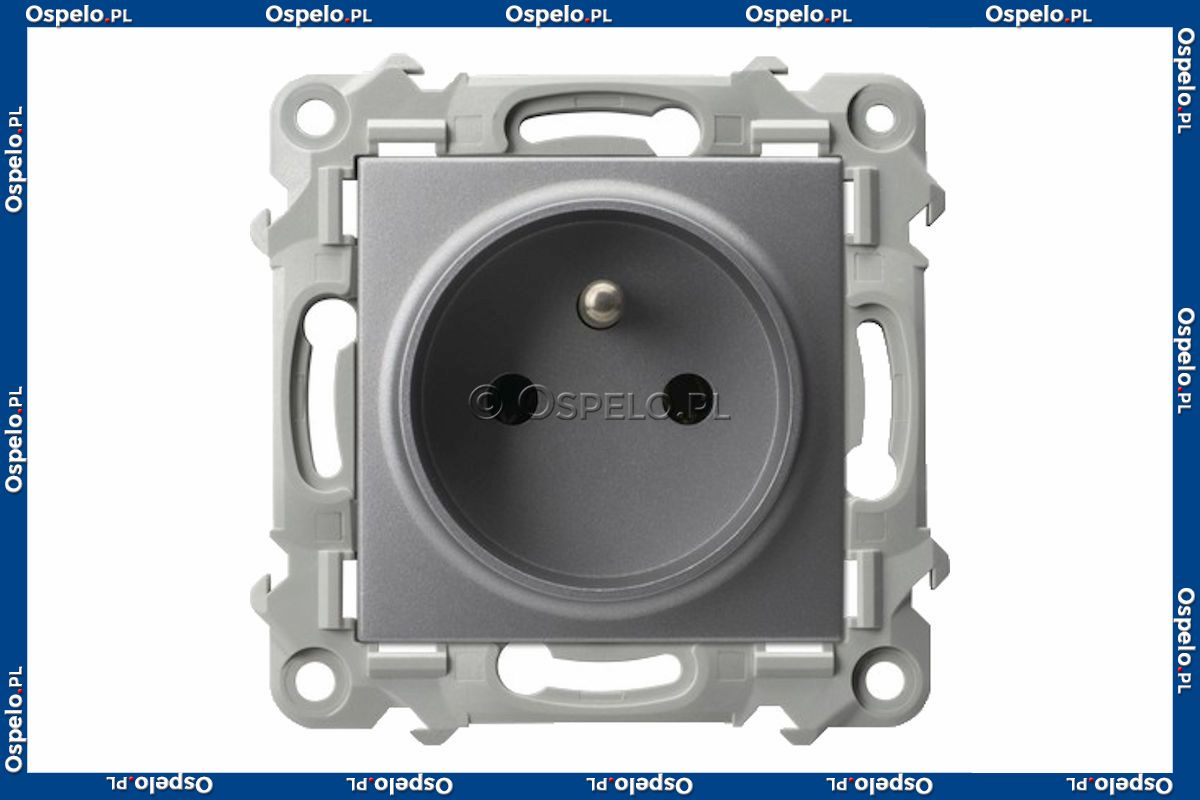 GP-1ZZ/m/70 Gniazdo pojedyncze z uziemieniem 16A (Zaciski śrubowe) Szary Mat. Ospel Szafir - Widok z przodu
