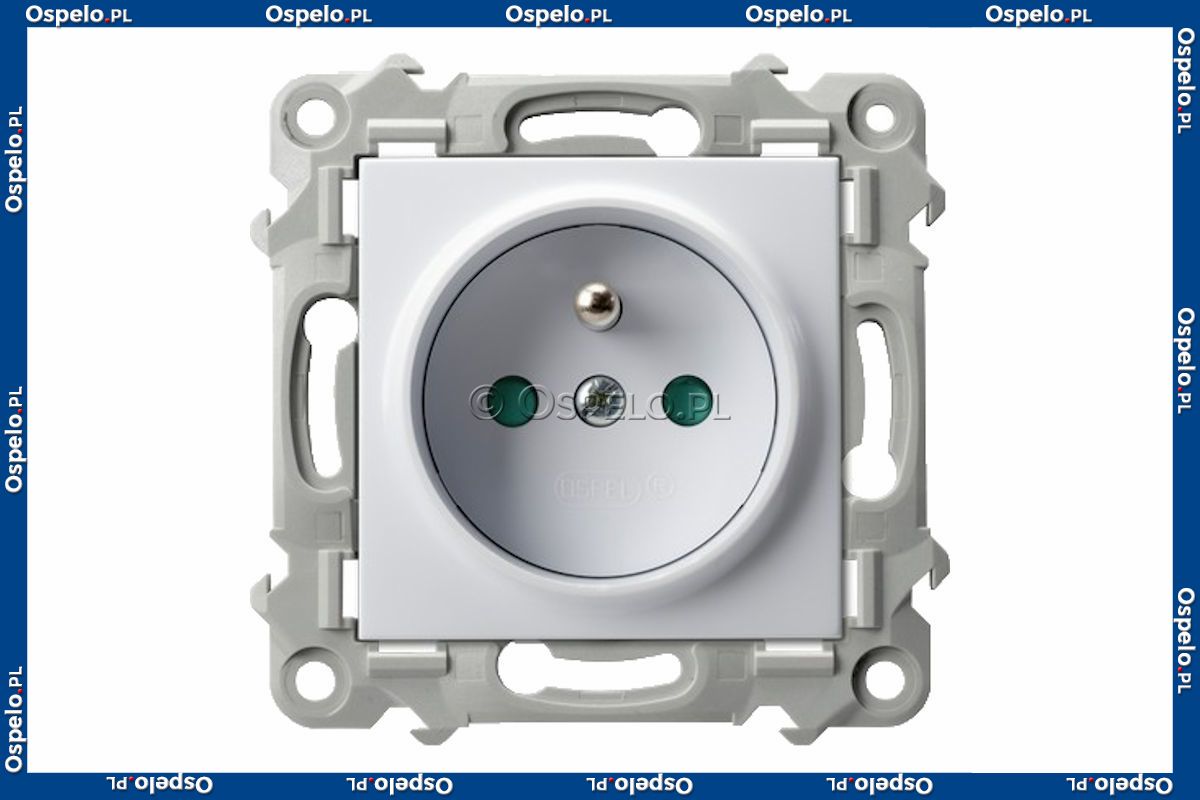 GP-1ZZP/m/00 Gniazdo pojedyncze z uziemieniem i przesłonami torów prądowych 16A (Zaciski śrubowe) Biały Ospel Szafir - Widok z przodu
