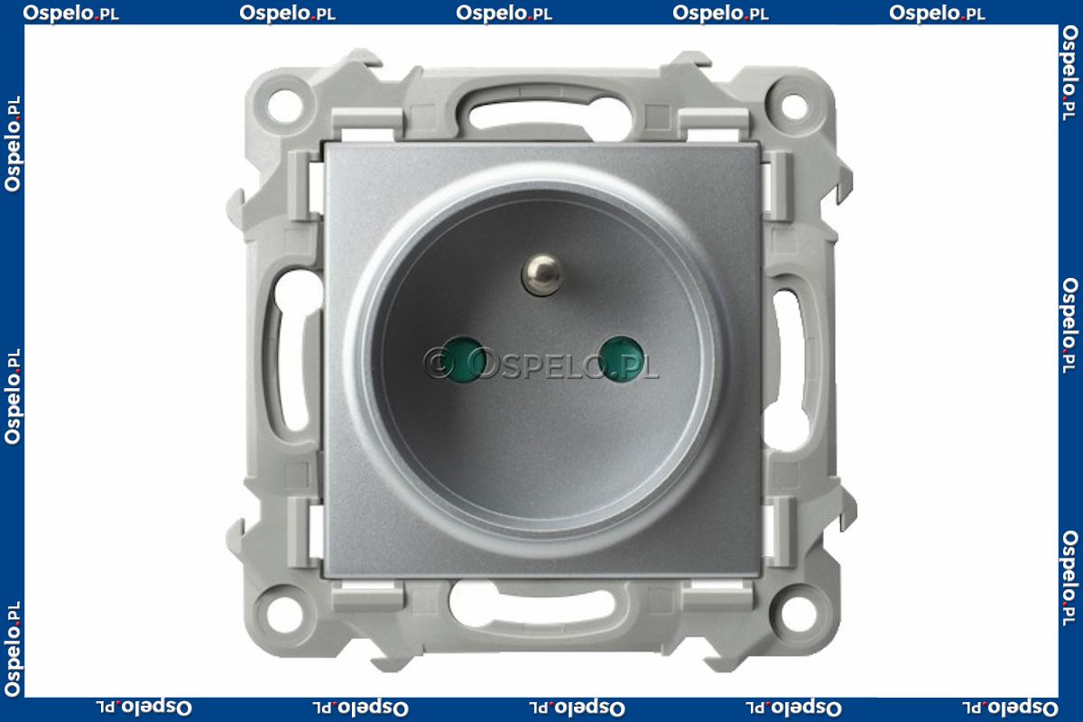 GP-1ZZP/m/18 Gniazdo pojedyncze z uziemieniem i przesłonami torów prądowych 16A (Zaciski śrubowe) Srebro Ospel Szafir - Widok z przodu