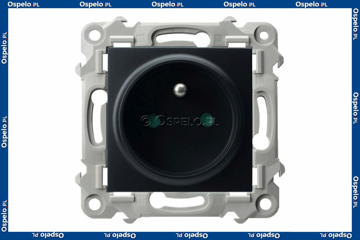 GP-1ZZP/m/33 Gniazdo pojedyncze z uziemieniem i przesłonami torów prądowych 16A (Zaciski śrubowe) Czarny Metalik Ospel Szafir - Widok z przodu