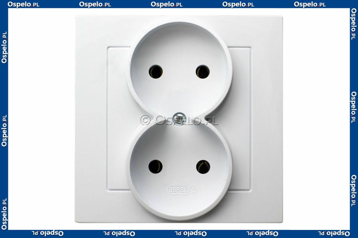 GP-2G/00 Gniazdo podwójne bez uziemienia, gniazdo kompletne, nie pasujące do ramek 16A (Zaciski śrubowe) Biały Ospel As - Widok z przodu