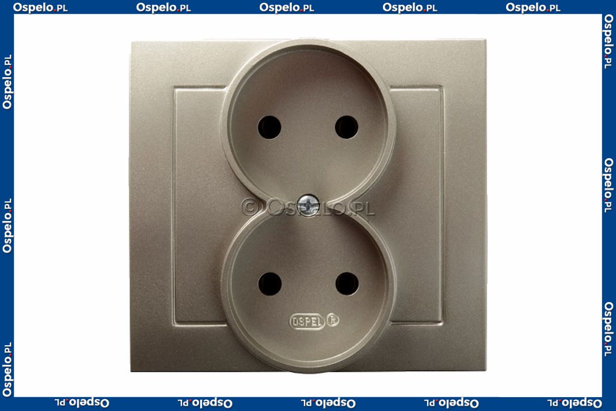 GP-2G/45 Gniazdo podwójne bez uziemienia, gniazdo kompletne, nie pasujące do ramek 16A (Zaciski śrubowe) Satyna Light Ospel As - Widok z przodu