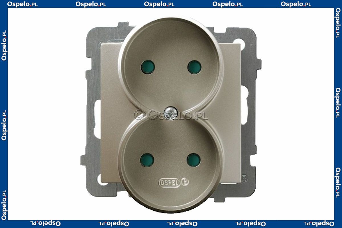 GP-2GRP/m/45 Gniazdo podwójne bez uziemienia z przesłonami torów prądowych 16A (Zaciski śrubowe) Satyna Light Ospel As - Widok z przodu