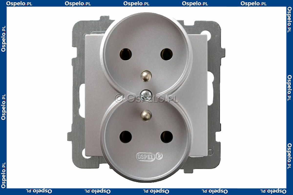 GP-2GRZ/m/18 Gniazdo podwójne z uziemieniem 16A (Zaciski śrubowe) Srebro Ospel As - Widok z przodu