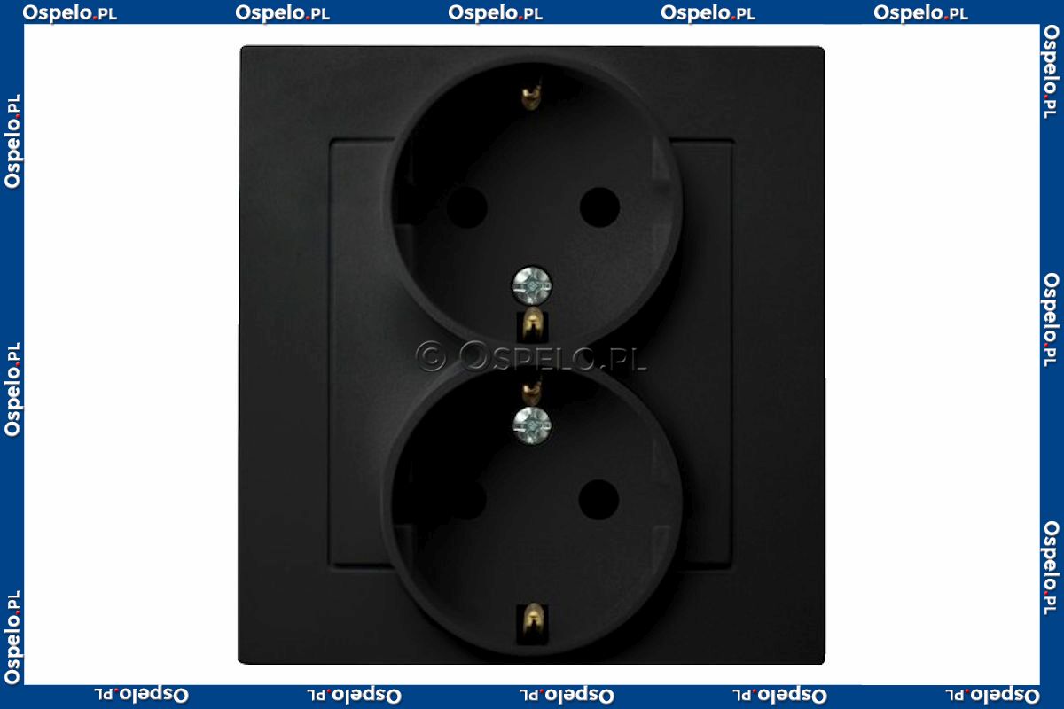 GP-2GS/33 Gniazdo podwójne z uziemieniem Schuko, gniazdo kompletne, nie pasujące do ramek 16A (Zaciski śrubowe) Czarny Metalik Ospel As - Widok z przodu