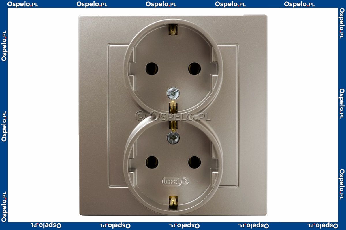 GP-2GS/45 Gniazdo podwójne z uziemieniem Schuko, gniazdo kompletne, nie pasujące do ramek 16A (Zaciski śrubowe) Satyna Light Ospel As - Widok z przodu