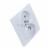 Szkic zdjęcia gniazdka elektrycznego obok którego znajdują się szczegółowe dane techniczne produktu-