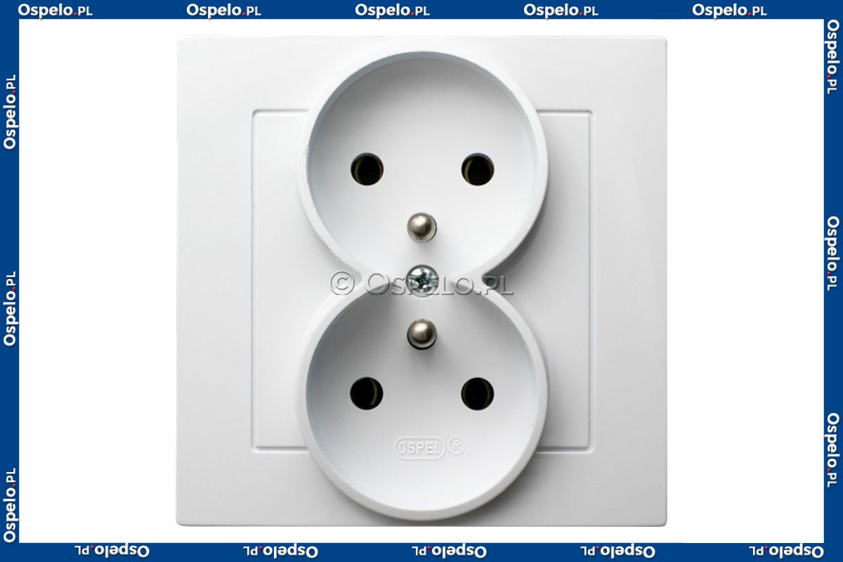 GP-2GZ/00 Gniazdo podwójne z uziemieniem, gniazdo kompletne, nie pasujące do ramek 16A (Zaciski śrubowe) Biały Ospel As - Widok z przodu