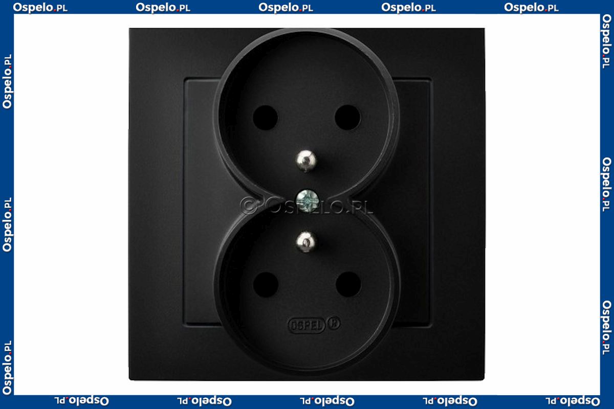 GP-2GZ/33 Gniazdo podwójne z uziemieniem, gniazdo kompletne, nie pasujące do ramek 16A (Zaciski śrubowe) Czarny Metalik Ospel As - Widok z przodu