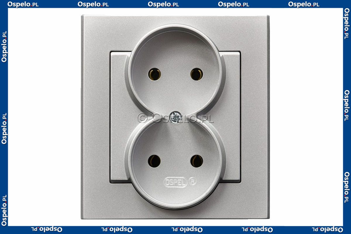 Gniazdo podwójne bez uziemienia, gniazdo kompletne, nie pasujące do ramek 16A (Zaciski śrubowe) Srebro Mat Ospel Sonata
