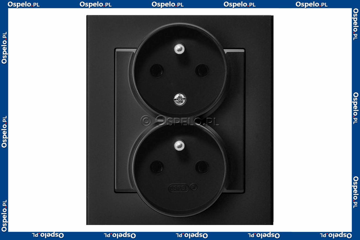 Gniazdo podwójne z uziemieniem i funkcją niezamienności faz, gniazdo kompletne, nie pasujące do ramek 16A (Zaciski śrubowe) Czarny Metalik Ospel Sonata
