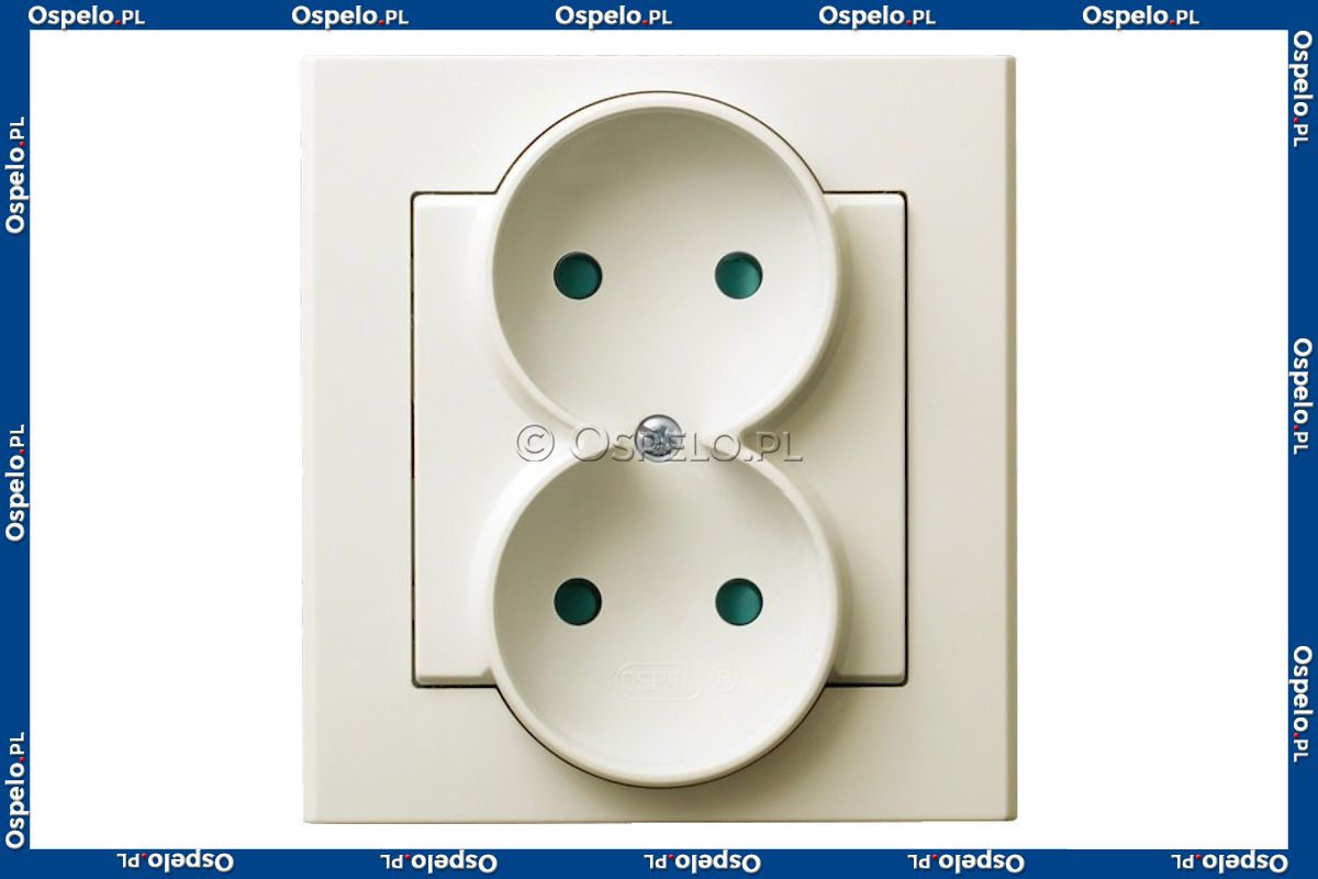 GP-2RP/27 Gniazdo podwójne z przesłonami torów prądowych, gniazdo kompletne, nie pasujące do ramek 16A (Zaciski śrubowe) Ecru Ospel Sonata - Widok z przodu