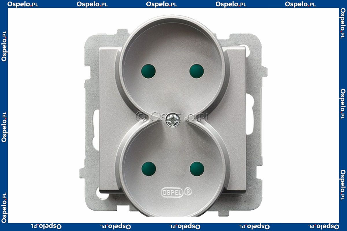 GP-2RRP/m/38 Gniazdo podwójne z przesłonami torów prądowych 16A (Zaciski śrubowe) Srebro Mat Ospel Sonata - Widok z przodu