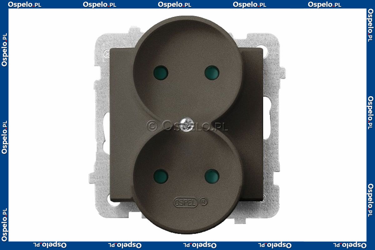 GP-2RRP/m/40 Gniazdo podwójne z przesłonami torów prądowych 16A (Zaciski śrubowe) Czekoladowy Metalik Ospel Sonata - Widok z przodu