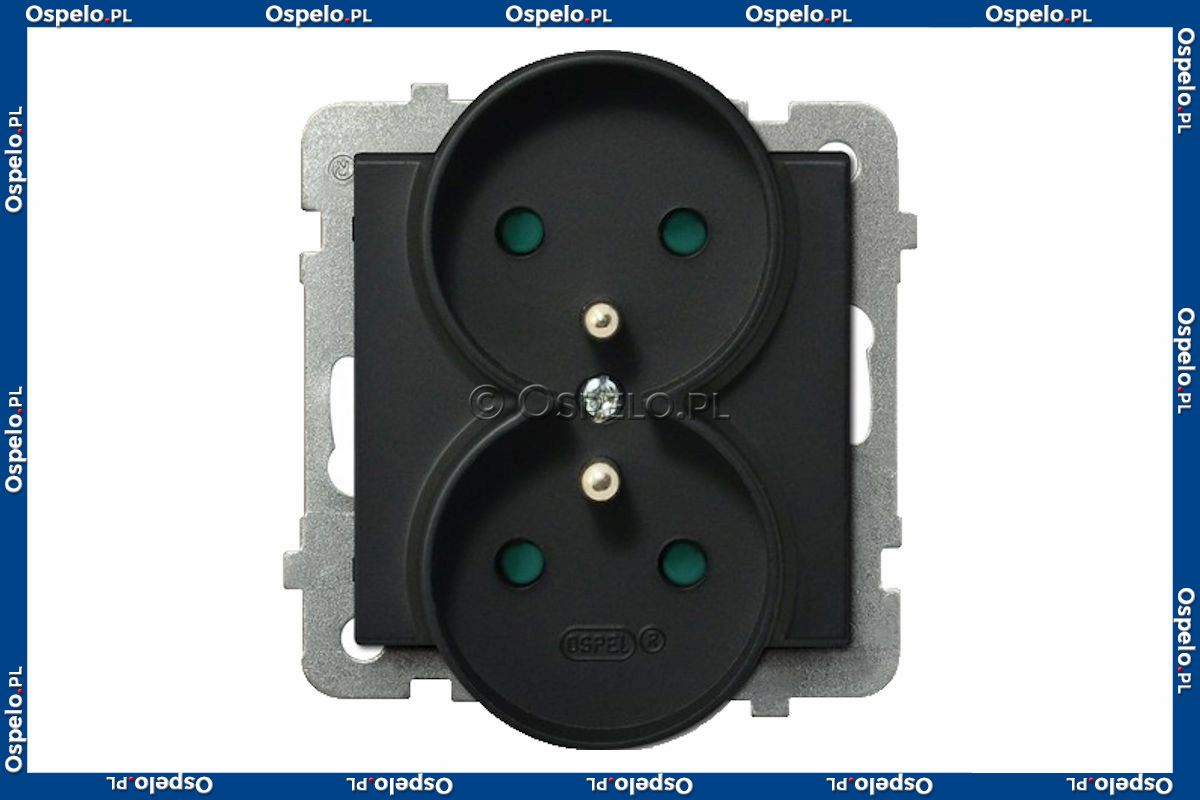 GP-2RRZP/m/33 Gniazdo podwójne z uziemieniem i przesłonami torów prądowych 16A (Zaciski śrubowe) Czarny Metalik Ospel Sonata - Widok z przodu