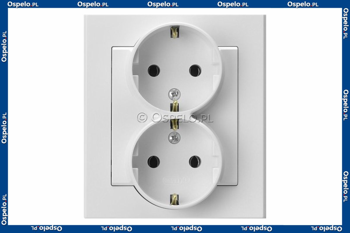 Gniazdo podwójne z uziemieniem Schuko, gniazdo kompletne, nie pasujące do ramek 16A (Zaciski śrubowe) Biały Ospel Sonata