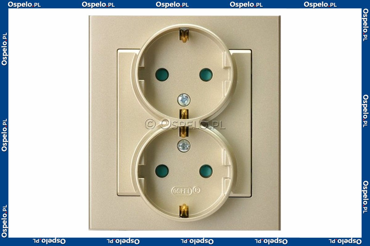 Gniazdo podwójne z uziemieniem Schuko i przesłonami torów prądowych, gniazdo kompletne, nie pasujące do ramek 16A (Zaciski śrubowe) Szampański Złoty Ospel Sonata
