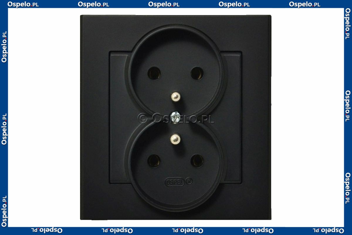 Gniazdo podwójne z uziemieniem, gniazdo kompletne, nie pasujące do ramek 16A (Zaciski śrubowe) Czarny Metalik Ospel Sonata