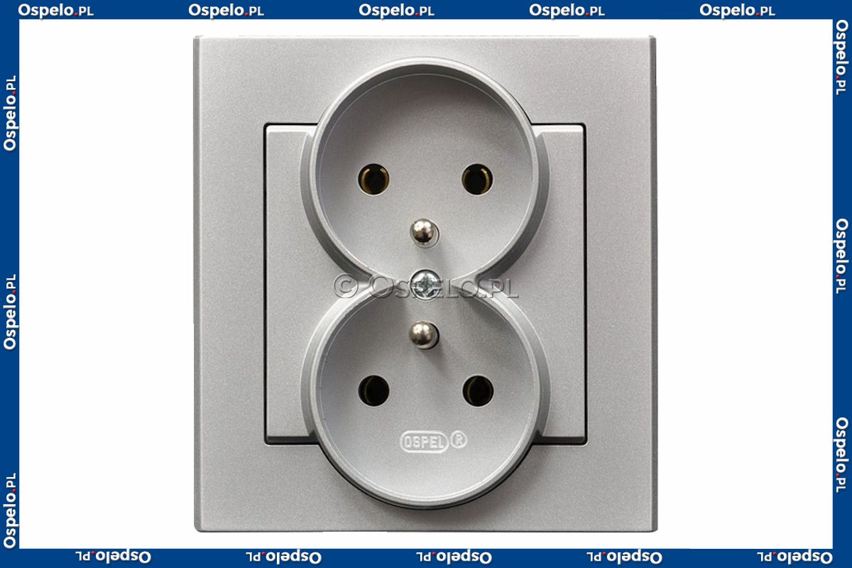 GP-2RZ/38 Gniazdo podwójne z uziemieniem, gniazdo kompletne, nie pasujące do ramek 16A (Zaciski śrubowe) Srebro Mat Ospel Sonata - Widok z przodu