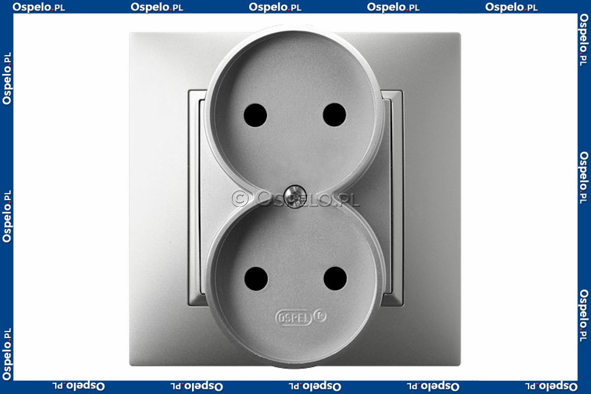 GP-2U/18 Gniazdo podwójne, gniazdo kompletne, nie pasujące do ramek 16A (Zaciski śrubowe)) Srebro Ospel Aria - Widok z przodu