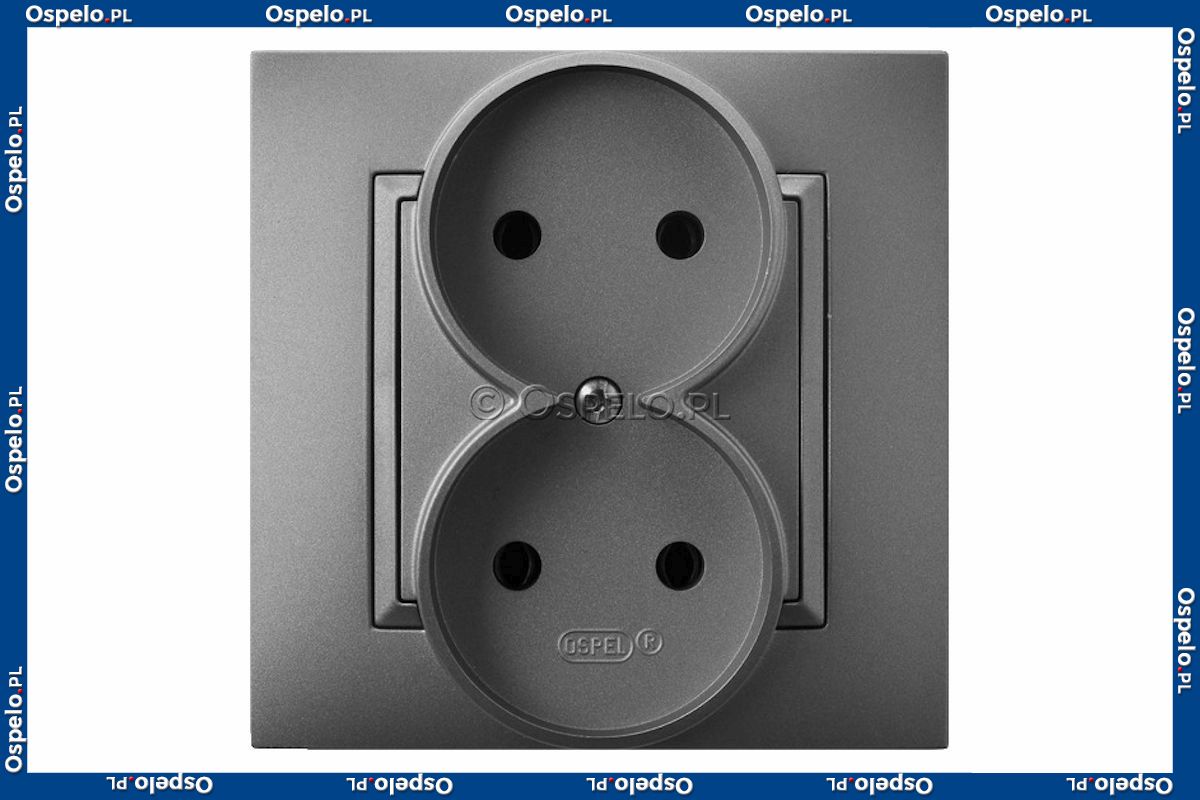 GP-2U/70 Gniazdo podwójne, gniazdo kompletne, nie pasujące do ramek 16A (Zaciski śrubowe)) Szary Mat. Ospel Aria - Widok z przodu