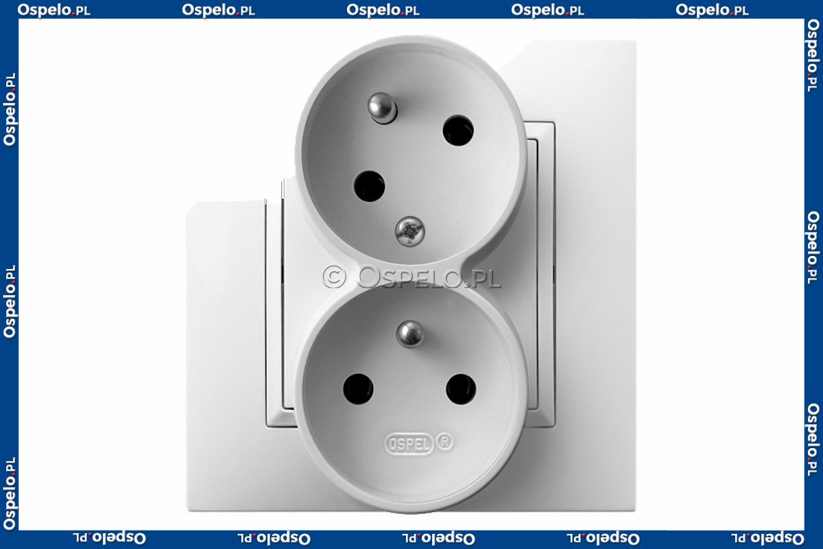 GP-2UC/00 Gniazdo podwójne z uziemieniem z funkcją niezamienności faz 16A (Zaciski śrubowe) Biały Ospel Aria - Widok z przodu