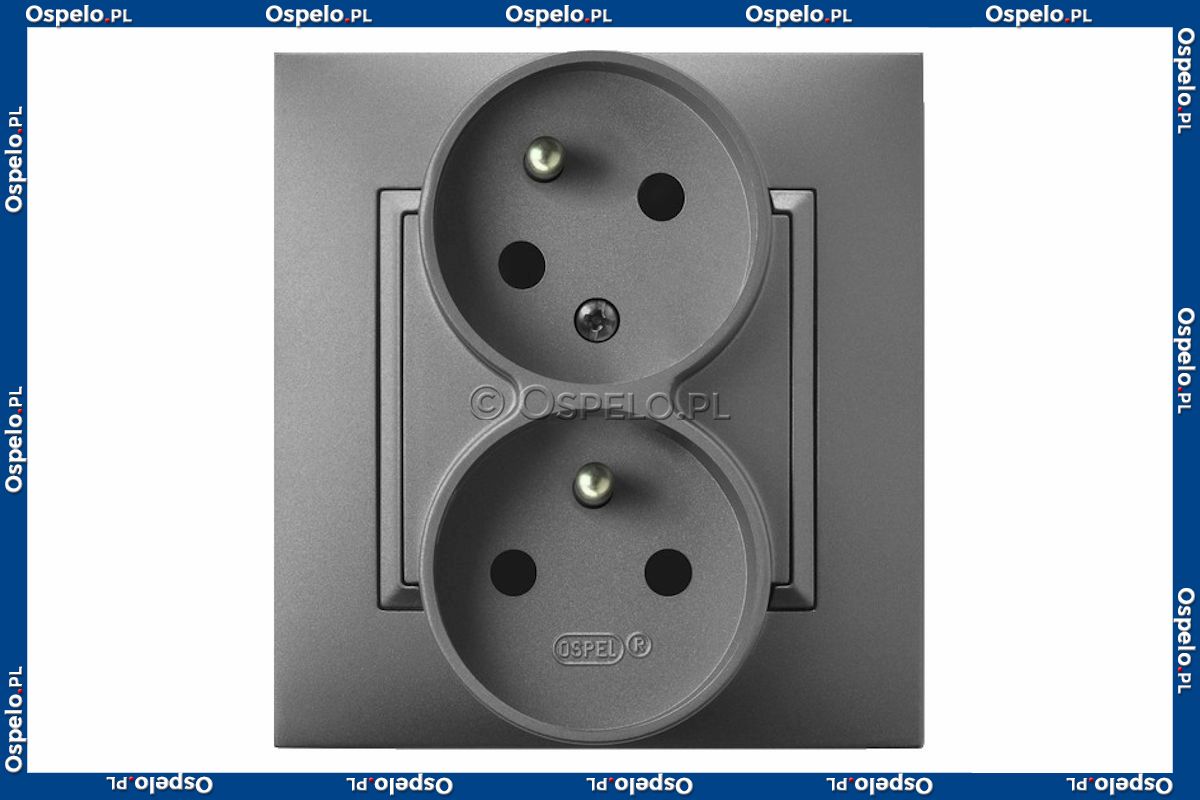GP-2UC/70 Gniazdo podwójne z uziemieniem z funkcją niezamienności faz 16A (Zaciski śrubowe) Szary Mat. Ospel Aria - Widok z przodu