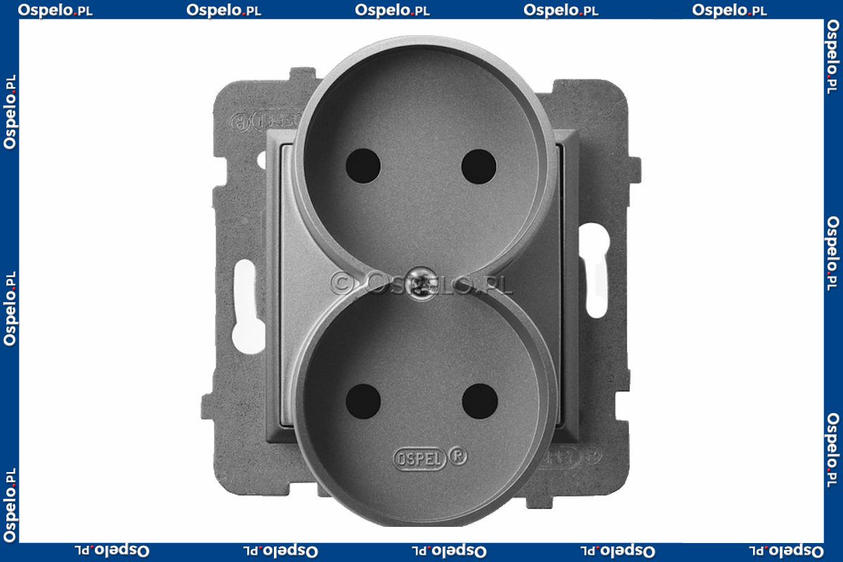Gniazdo podwójne bez uziemienia 16A (Zaciski śrubowe) Szary Mat. Ospel Aria