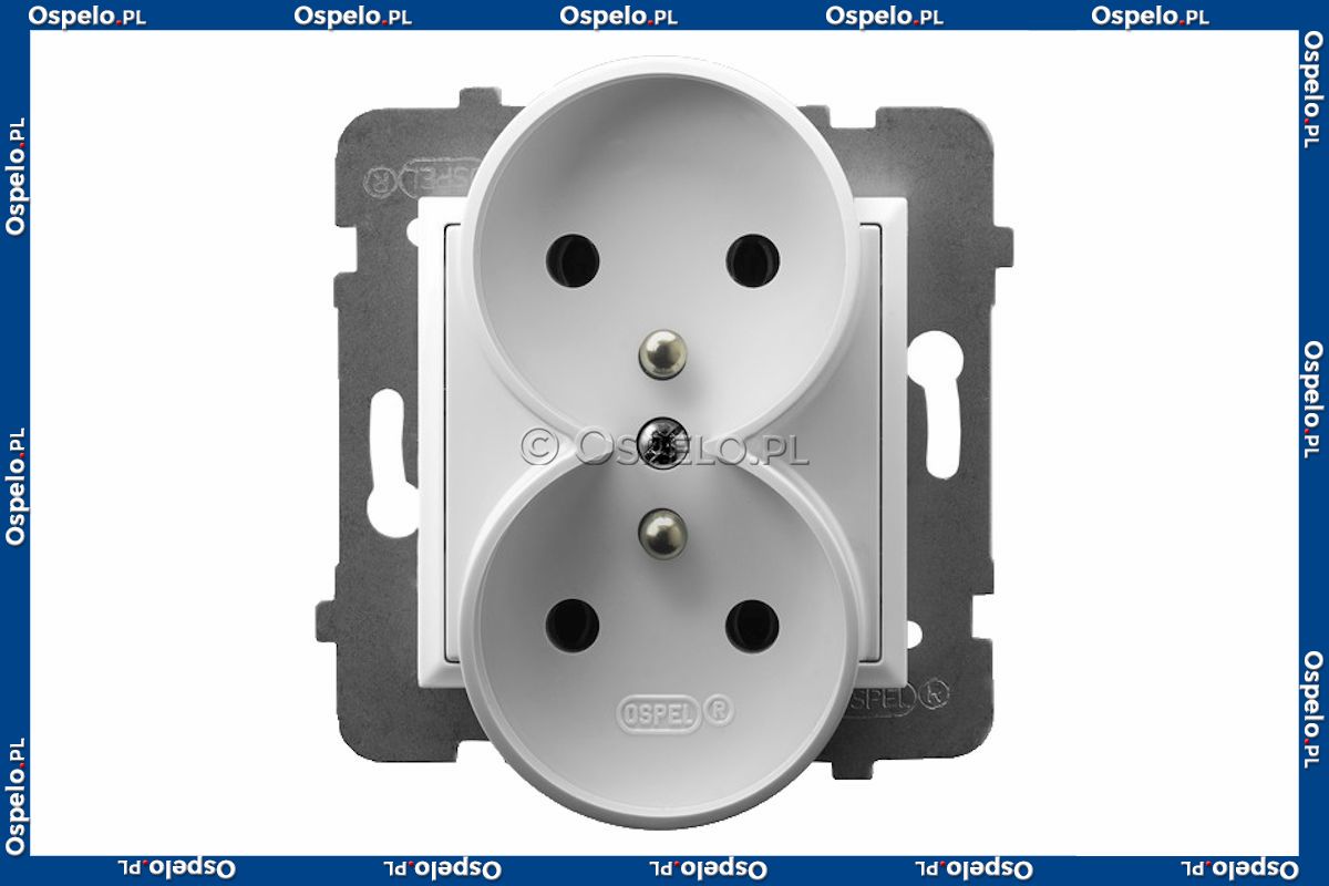 GP-2URAZ/m/00 Gniazdo podwójne z uziemieniem do ramek Prestige 16A (Zaciski śrubowe) Biały Ospel Aria - Widok z przodu