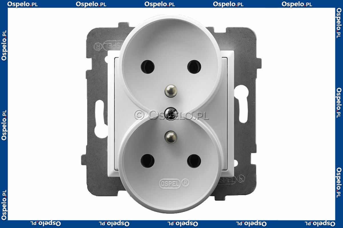 GP-2URZ/m/00 Gniazdo podwójne z uziemieniem 16A (Zaciski śrubowe) Biały Ospel Aria - Widok z przodu