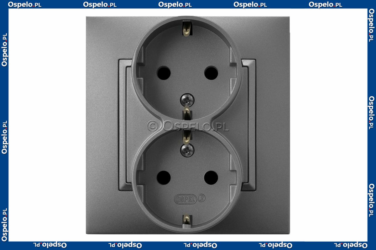 GP-2US/70 Gniazdo podwójne z uziemieniem Schuko, gniazdo kompletne, nie pasujące do ramek 16A (Zaciski śrubowe) Szary Mat. Ospel Aria - Widok z przodu